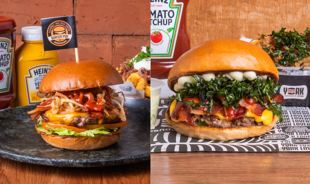 Na York Sandwich Shop, o destaque foi o Crispy Burger, que combinou pão brioche, hambúrguer Angus de 120g, queijo prato, bacon crocante e um diferencial autoral: ketchup de goiabada defumado, preparado com Heinz Tradicional, além de couve crispy e maionese aioli. O burger foi vendido por R$ 33,00.