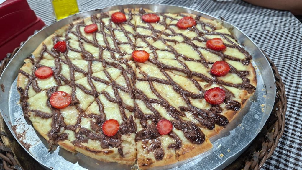 A casa trabalha com rodízio e serviço à la carte, oferecendo mais de 40 sabores entre pizzas salgadas e doces, todas com massa artesanal e preparo cuidadoso.