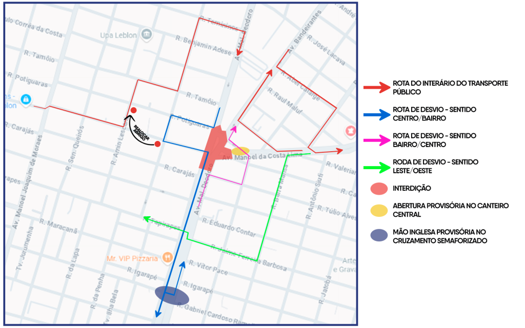 - Ponto provisório: Rua Amim Lescani com Rua Potiguaras
