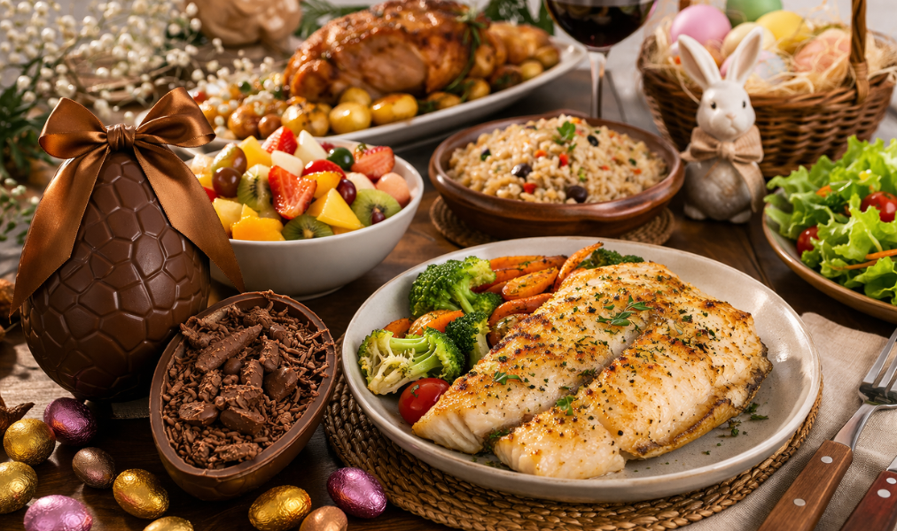 Durante a Páscoa, o cardápio ganha protagonismo e reúne alimentos que, embora carreguem valor cultural e afetivo, exigem atenção no consumo. O chocolate, principal símbolo da data, concentra altos níveis de açúcar e calorias, enquanto pratos típicos, como bacalhau preparado com molhos gordurosos ou carnes mais pesadas, elevam a ingestão de sal e gordura.