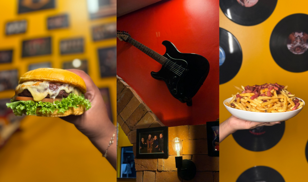 O ambiente também merece destaque. O espaço foi pensado para reforçar a vibe rock’n’roll, com decoração temática, personalidade forte e aquele clima descontraído que combina com boa comida e boas conversas.